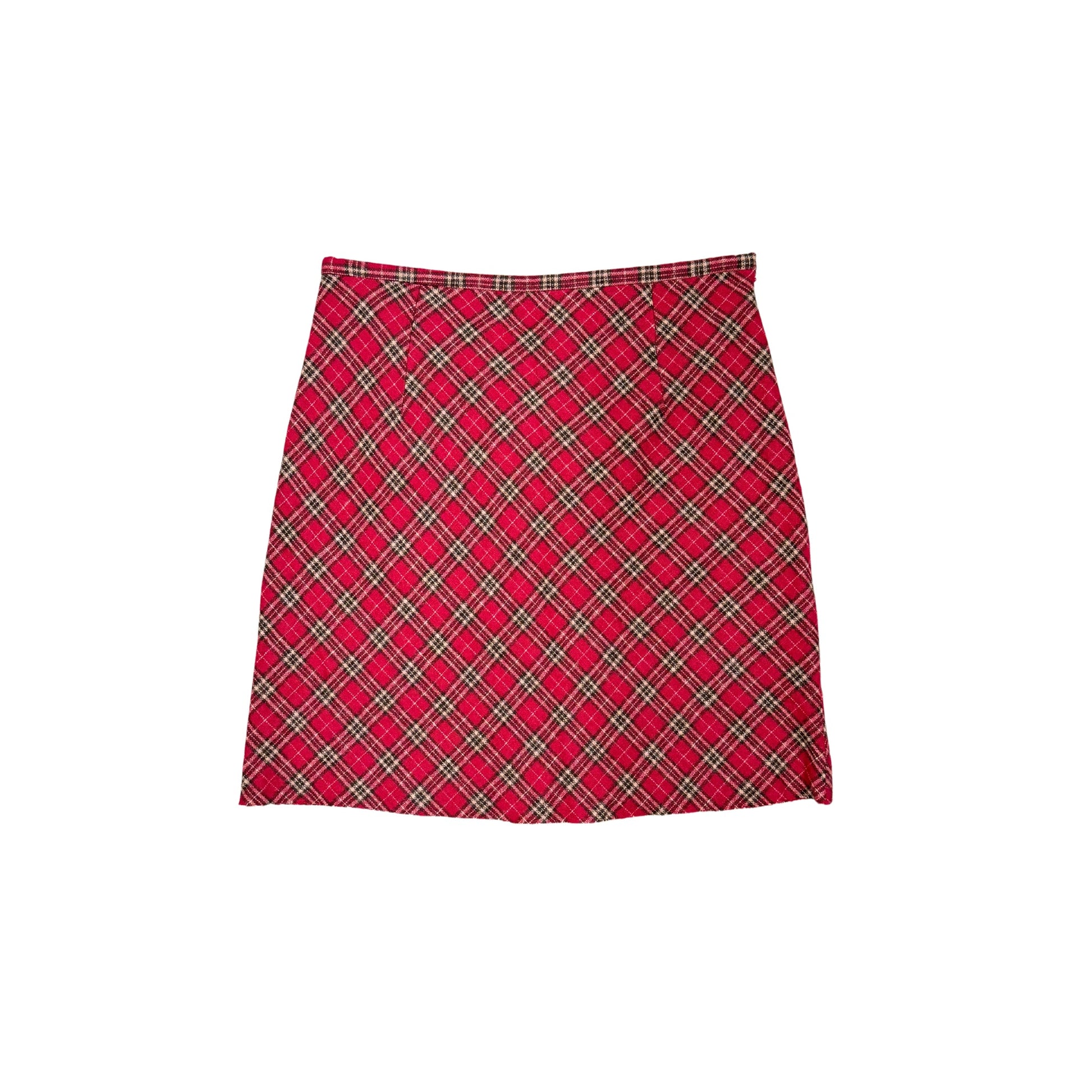 Silver Pearl Red Plaid Midi Skirt